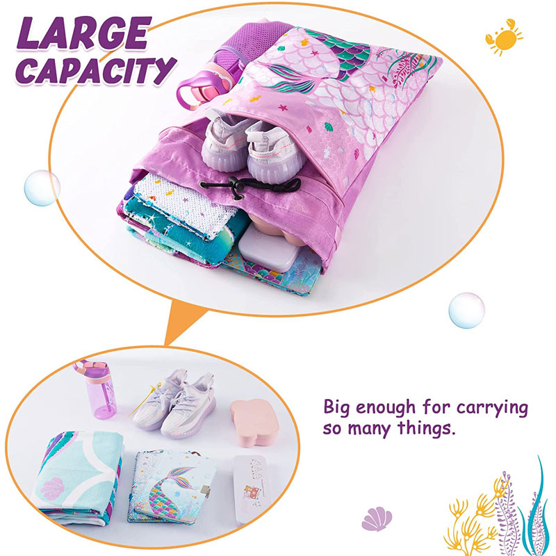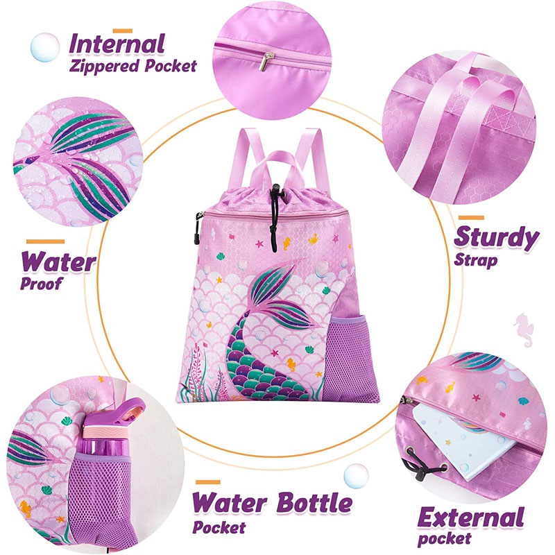 · 【รูปลักษณ์ที่น่าดึงดูด】ออกแบบและผลิตโดยเราเอง กระบวนการพิมพ์ขั้นสูง ด้วยสีพื้นหลังสีม่วง นางเงือกเหมือนจริงปรากฏบนกระเป๋าเป้สำหรับเด็ก รายล้อมไปด้วยแมงกะพรุน ม้าน้ำ และหญ้าทะเล เด็ก ๆ จะรักมัน